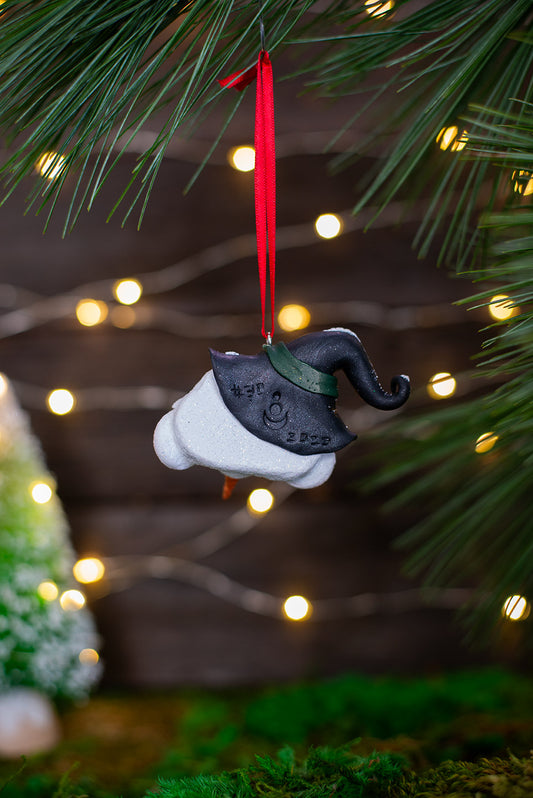 Witchy Snowmish Ornament w/ Red Ribbon #030