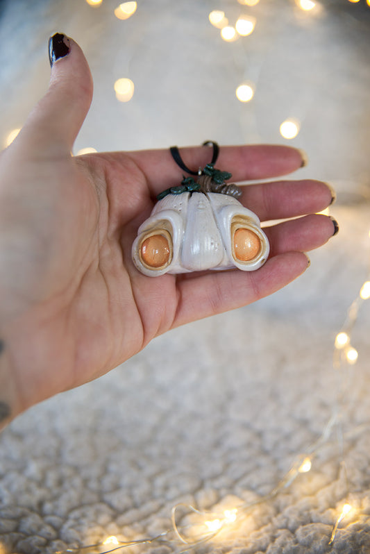 White Pumpkin Ornament w/ Cream Ribbon #40 (left)