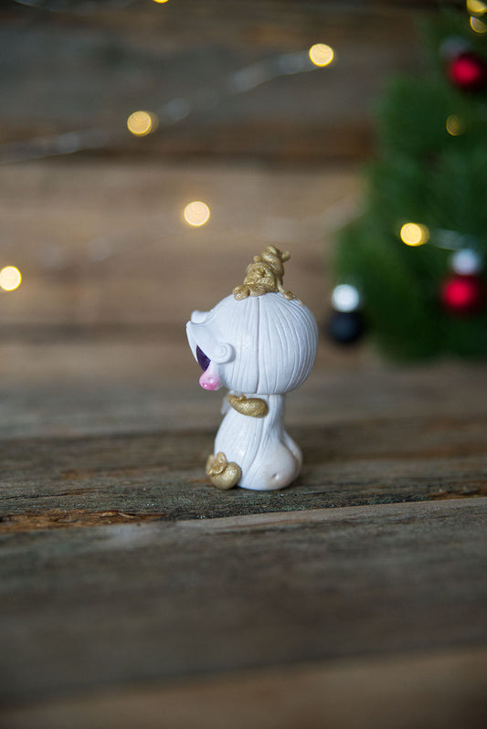 White & Gold Pumpkinhead Mish w/ Amethyst Eyes & Quartz #105